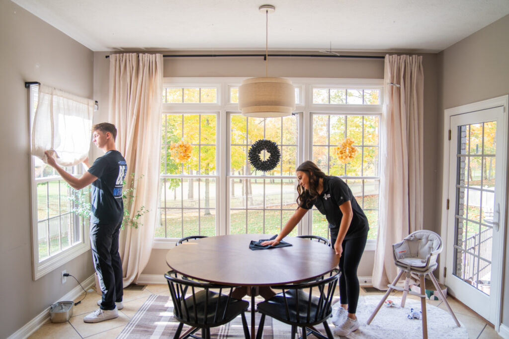 • Throughout: Tidy up, empty all trash bins, and dust lights and fixtures.